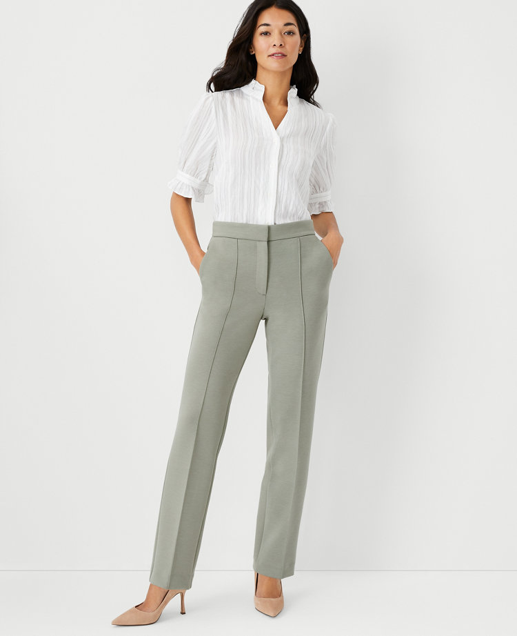 High Rise Tie Waist Straight Leg Pants Fashionable Business Attire How To Hem Pants Straight Leg Pants